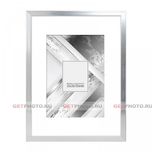 Фоторамка, рамка 30х40 см с паспарту 21х30 (А4) см для фотографии, постера, вышивки, мозаики, SULVER BOX PASSPARTOUT, серебристая |