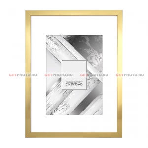 Фоторамка, рамка 30х40 см с паспарту 21х30 (А4) см для фотографии, постера, вышивки, мозаики, GOLD BOX PASSPARTOUT, золотистая |