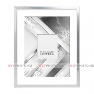 Фоторамка, рамка 40х50 см с паспарту 30х40 см для фотографии, постера, вышивки, мозаики, классическая, SILVER BOX PASSPARTOUT, серебристая |