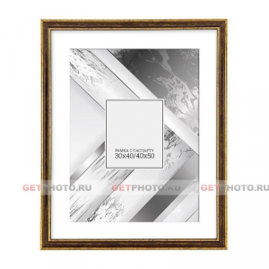 Фоторамка, рамка 40х50 см с паспарту 30х40 см для фотографии, постера, вышивки, мозаики, классическая, GOLD BOX PASSPARTOUT, золотистая Формат фотографий — 30х40, 40х50 |